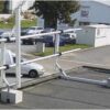 • Stevig zelfdragend systeem : Aluminium buis 3 m+ aluminium steun (met betonblok) als tegengewicht. Steun met betonblok om de 3 meter te plaatsen.