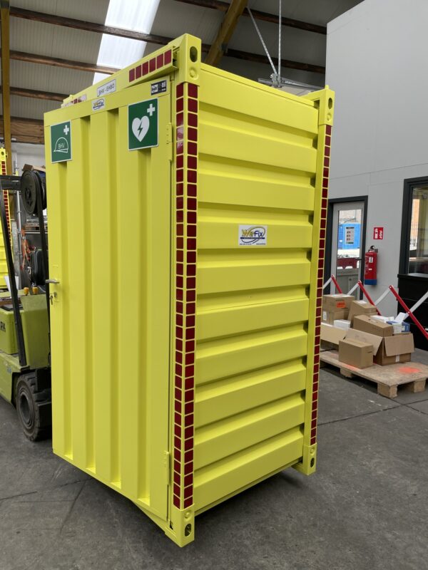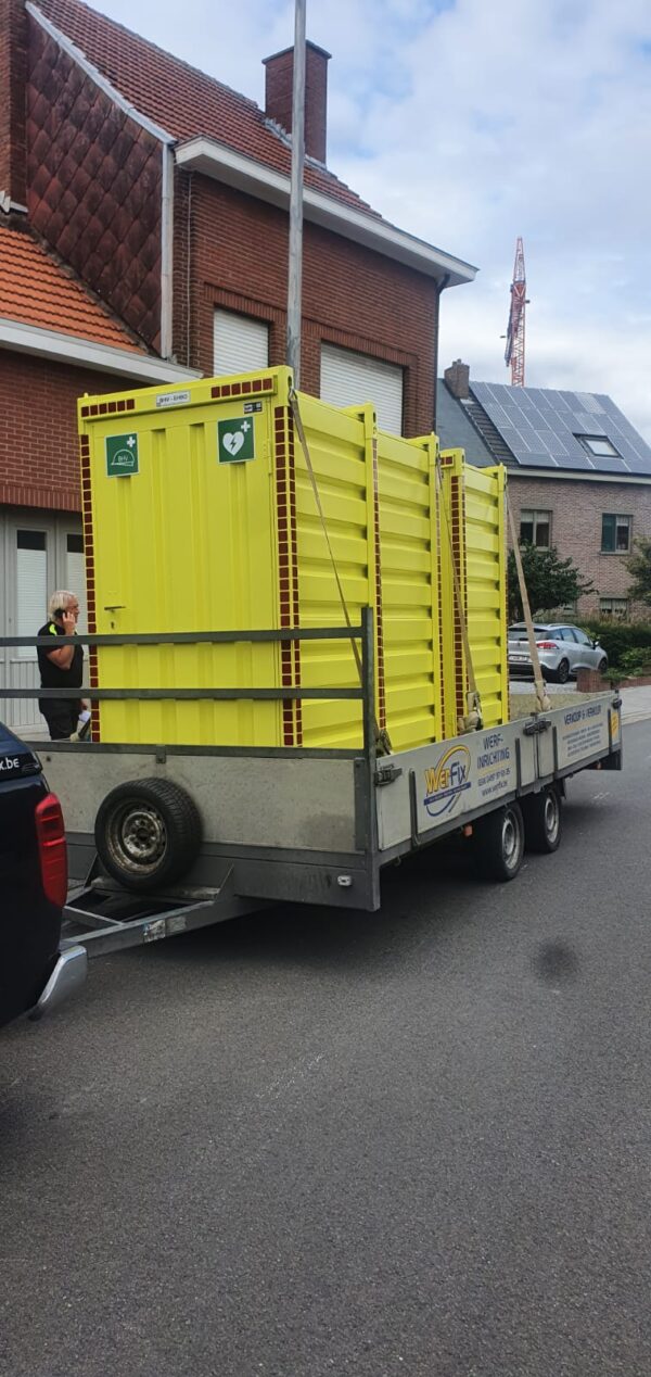 De Kovobel EHBO containers zijn snel en eenvoudig te verplaatsen dmv een kraan of heftruck.