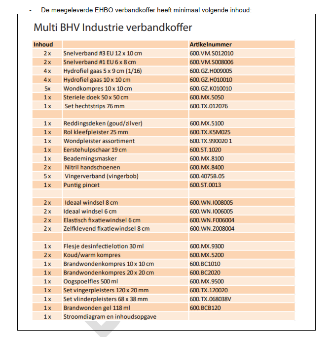 - alle verbruiksmaterialen en houders zijn A kwaliteit en de koffer volgens het oranje kruis (speciaal voor bouw en industrie)