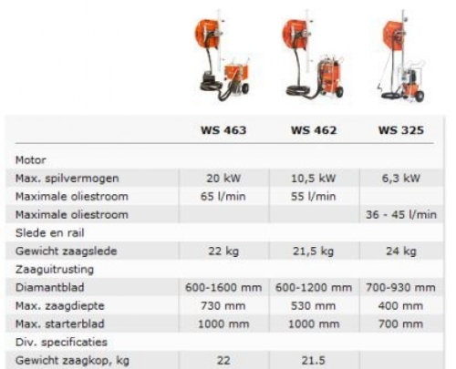 Net als bij de WS 462 hydraulische wandzaag is deze bedoeld om een efficiënte werkomgeving te creëren. Voor betere prestaties zit het blad dichter bij de rail. Dit komt ook de breekkracht ten goede, verbetert de zaagnauwkeurigheid en vermindert de slijtage. De wandzagen zijn gebouwd op een modulair systeem, waarbij elke module een optimaal gewicht heeft.