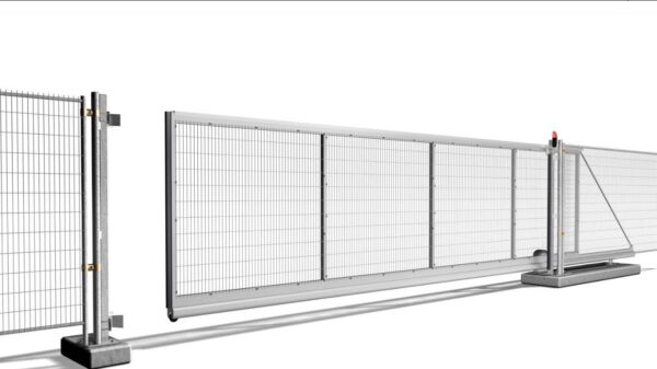 Met deze elektronische mobiele schuifpoort sluit je je werf veilig en comfortabel af.
