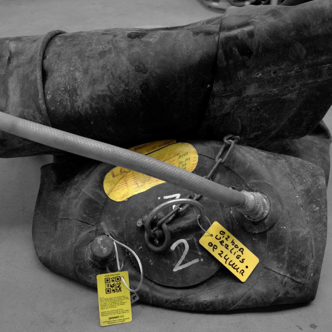 Alle flexibele afsluitcilinders worden compleet geleverd met solide ketting, luchtslang (met autoventiel of Geka-koppeling 1”) en manometer-controleset met overdrukventiel (vanaf de maat 300/800 mm). Alle afsluitcilinders worden geleverd met 3 of 5 mtr ketting en luchtslang en manometer-controle-set met ontluchtingskraan. Op verzoek kunnen wij extra vulslang of ketting monteren. Het tarief per extra meter vulslang of ketting bedraagt € 1,50 per lopende meter. Dit is een eenmalige meerprijs ongeacht de duur van de huur.