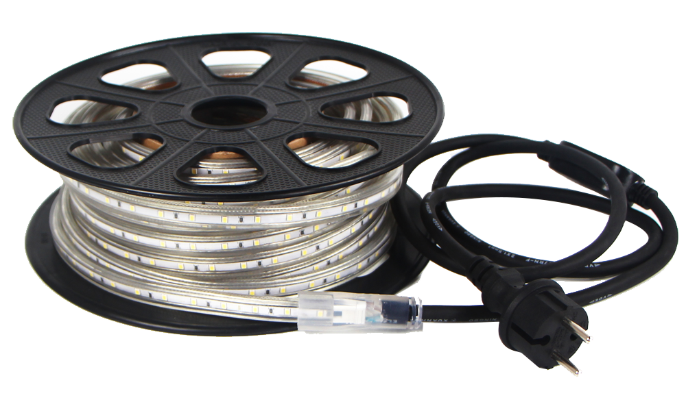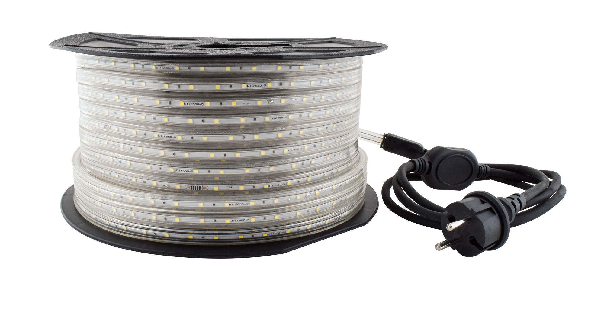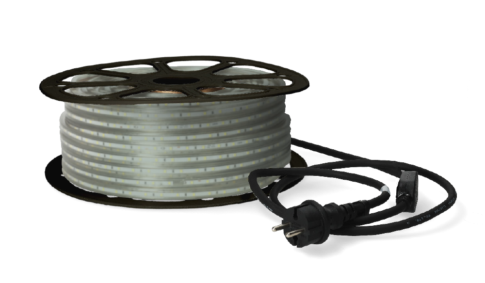 • Serpent LED de lumière de 15 mètres avec 60 LED par mètre. Fonctionne sur le réseau 230 V, indice de protection IP65, résistant aux projections d’eau et à la poussière.