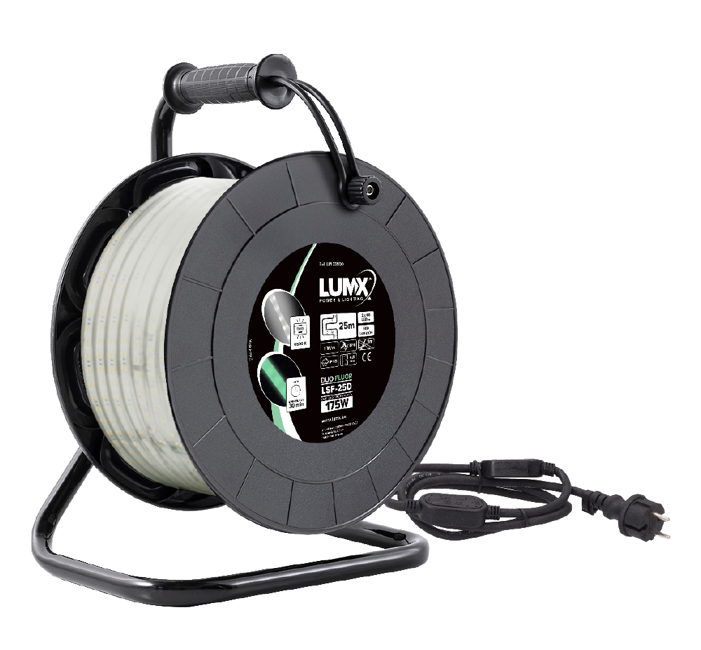 Serpent LED de lumière DUO FLUOR sur enrouleur 25 m – 2 × 60 LED/m – L = 12 mm