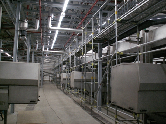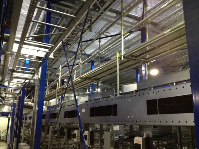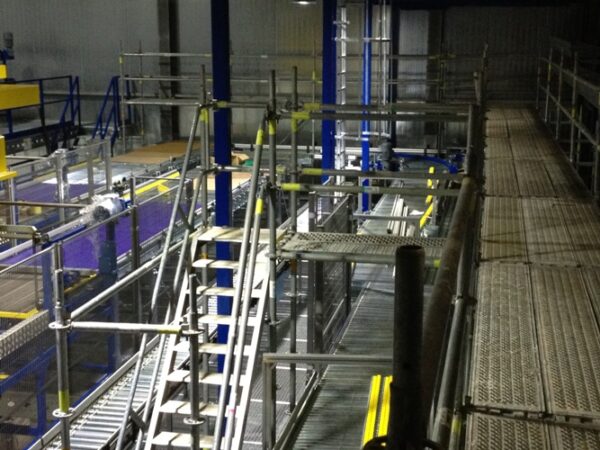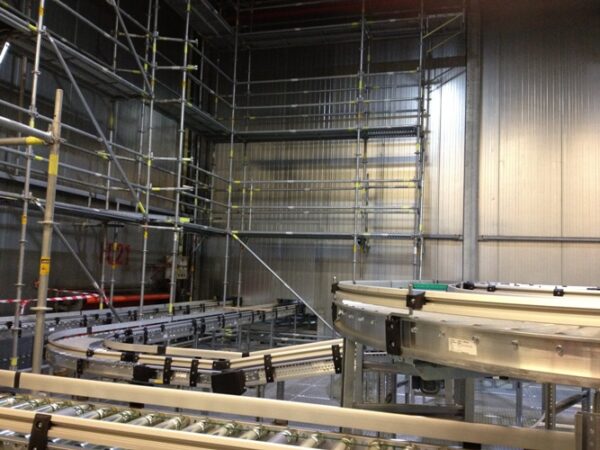 Hier vindt u enkele foto’s van een speciale steigerconstructie voor de groentehal van Sint-Katelijne-Waver (steigerbouw over transportband en machines) en voor de Colruyt magazijnen te Halle.