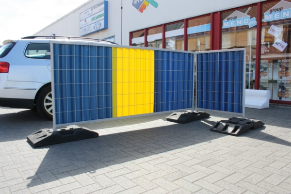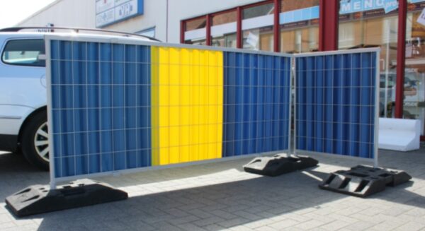 Stadshekken geel-blauw-geel werfhekken