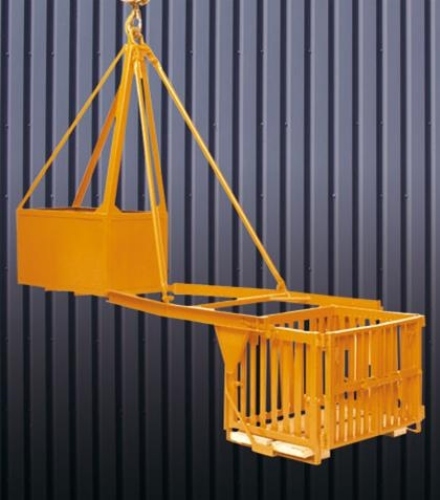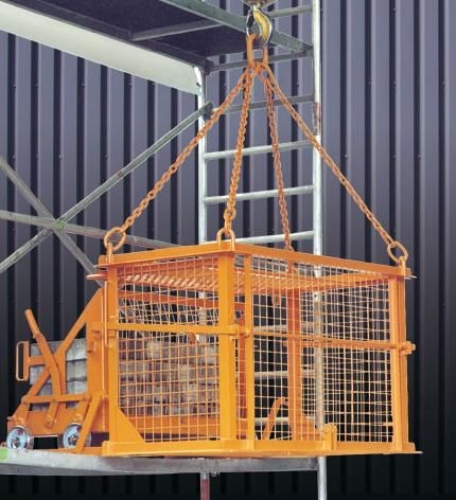 Speciale pallethaak met steenkorf voor gebruik op steigers
