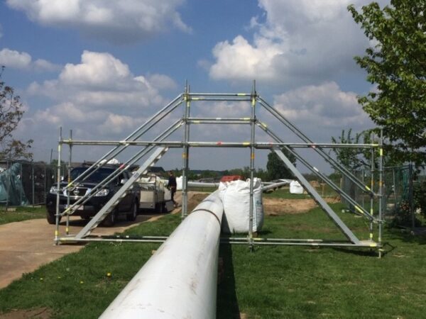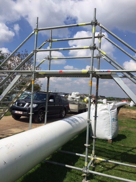 • Denys zocht voor de werf Fluxys een oplossing om een gasleiding te overbruggen. Werfix bouwde een trappentoren op maat.