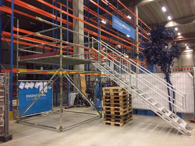 aan, zodat de steigerplanken er overheen passen - De plaatverbindingsbeugels worden aan solide platen bevestigd door de