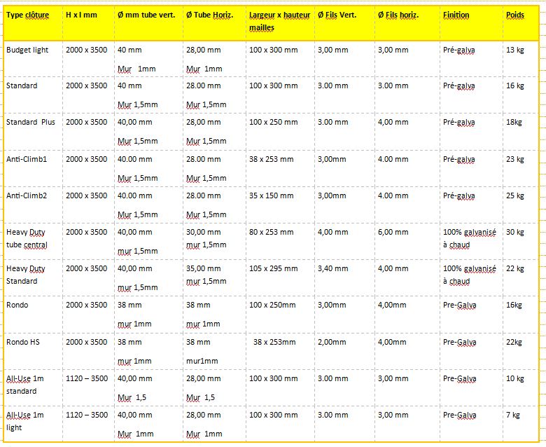 Onder details vindt u een vergelijkende tabel van een aantal van onze werfhekken.